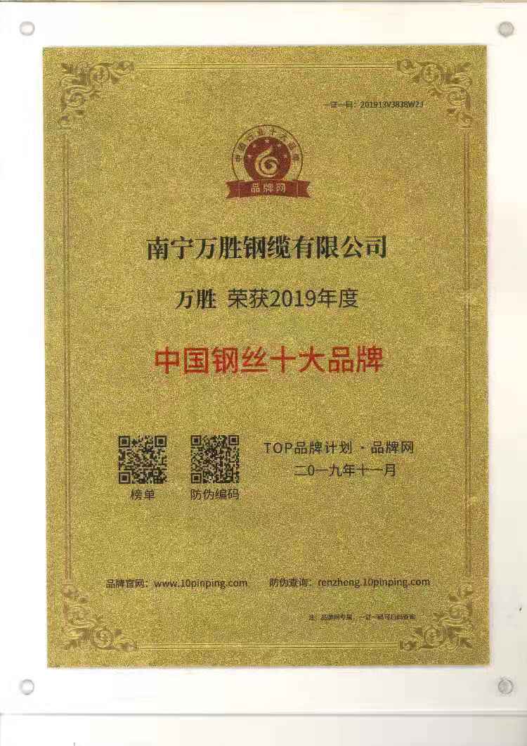 2019年度“中國鋼絲十大品牌”